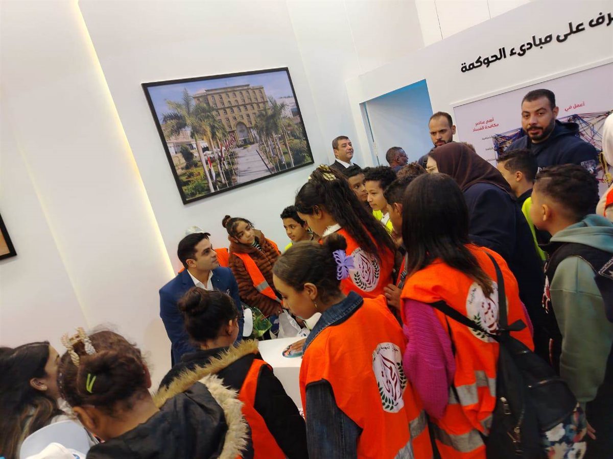 أما في جناح وزارة البيئة، فشارك فريق العمل الأطفال في ألعاب تعليمية مثل تركيب البازل ولعبة عجلة الحظ التي تطرقت إلى قضايا مثل التشجير والكوارث الطبيعية، وأهداف التنمية المستدامة الـ17، كما شهدت الجولة زيارة جناح دولة الإمارات العربية المتحدة. وتلبية لطلب قيادات التنفيذية لجناح الامارات واخذ الصور التذكارية مع اطفال المحروسة.