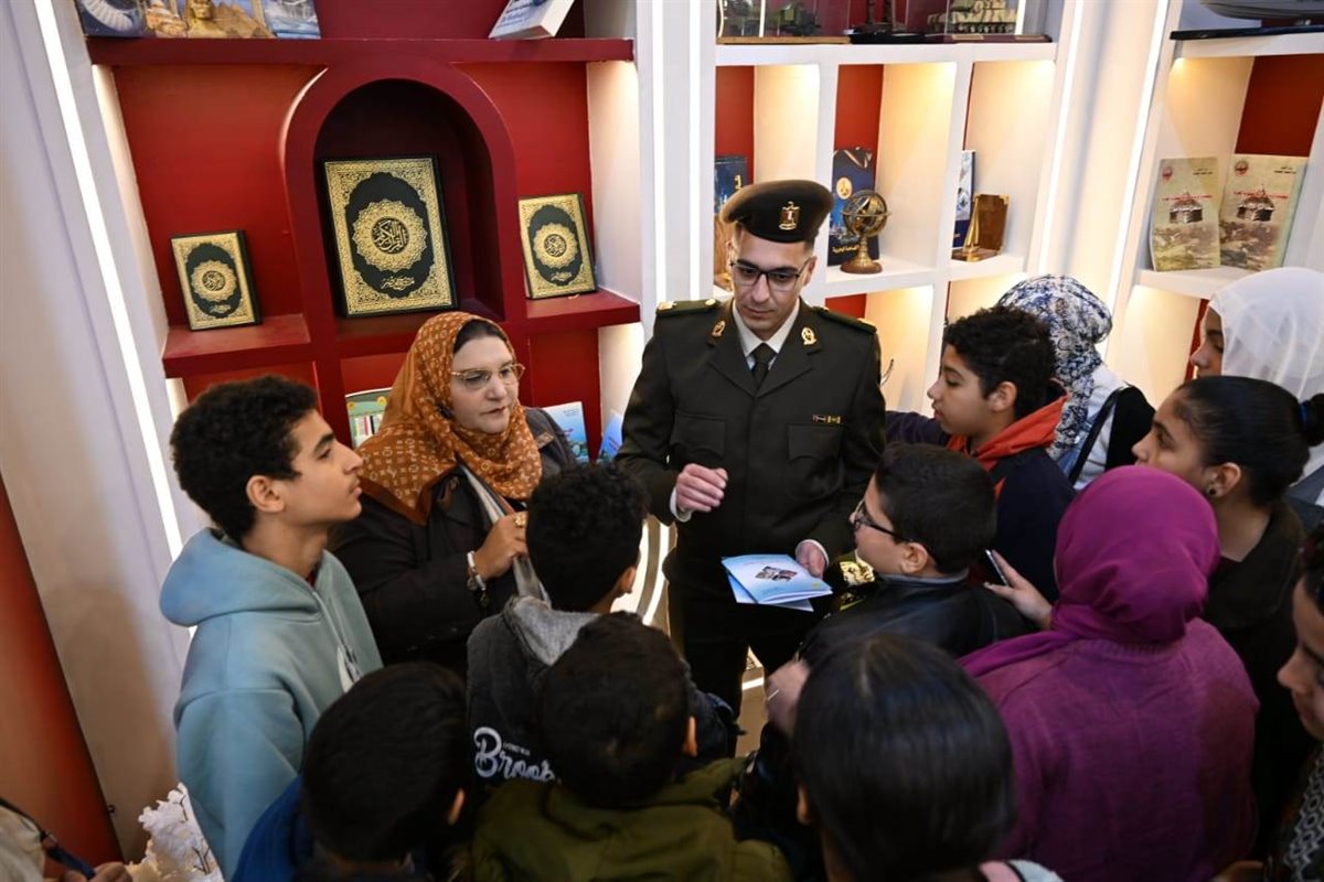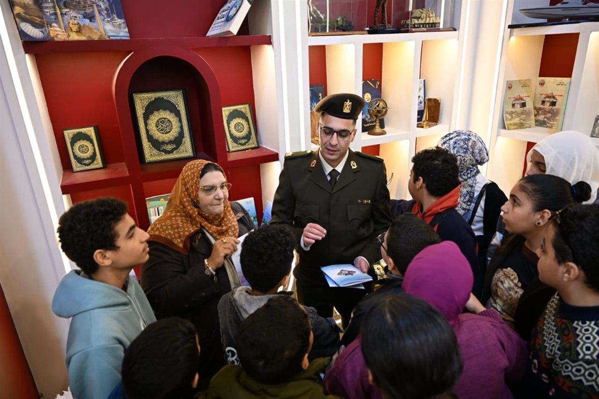 ثم انتقلوا إلى جناح وزارة الدفاع، حيث استمعوا إلى شرح حول دور القوات المسلحة في حماية الوطن وأمن البلاد، كما استعرضوا إصدارات الوزارة حول التراث العسكري والتاريخ والأنشطة المختلفة.