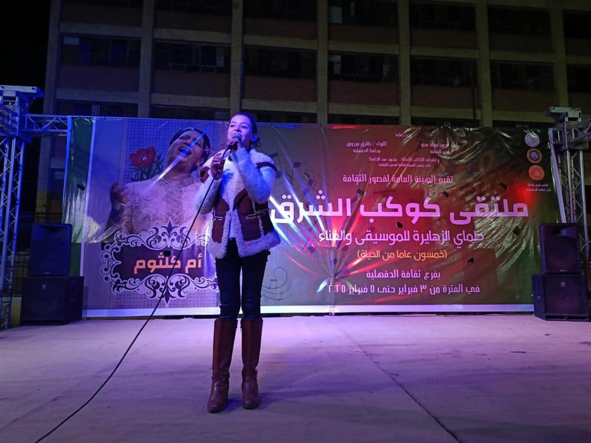 ضمن برنامج احتفاء وزارة الثقافة بذكرى خمسين عامًا على رحيل سيدة الغناء العربي أم كلثوم، وبرعاية الدكتور أحمد فؤاد هنو، وزير الثقافة، واللواء طارق مرزوق، محافظ الدقهلية، شهد الكاتب محمد ناصف، نائب رئيس الهيئة العامة لقصور الثقافة، الاثنين، أولى فعاليات ملتقى كوكب الشرق للموسيقى والغناء تحت عنوان "خمسون عاما من الحياة" بمركز الشباب بقرية طماي الزهايرة، مسقط رأس سيدة الغناء العربي أم كلثوم.