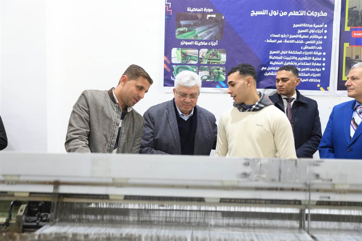 وتفقد الدكتور أيمن عاشور مبنى المعامل، وورش العمل، ويضم المبنى ورشة الأعمال الأساسية، والتي تحتوي على 6 ماكينات، و5 ماكينات غزل ونسيج، و30 ماكينة في ورشة الملابس الجاهزة، فيما يحتوي المبنى على معمل الفيزياء، و3 معامل للحاسب الآلي، ويحتوي كل معمل على 25 جهازًا، كما يضم المبنى معمل الصناعات الغذائية ويحتوي على 18 جهازًا من أجهزة التصنيع الغذائي، ومعرض الجامعة، ويحتوي على عدد من الماكينات كنماذج لمشروعات تطبيقية، وأثنى الوزير على المنتجات التي نفذها الطلاب، التي تُعد نتاجًا للتدريبات العملية والتطبيقية.