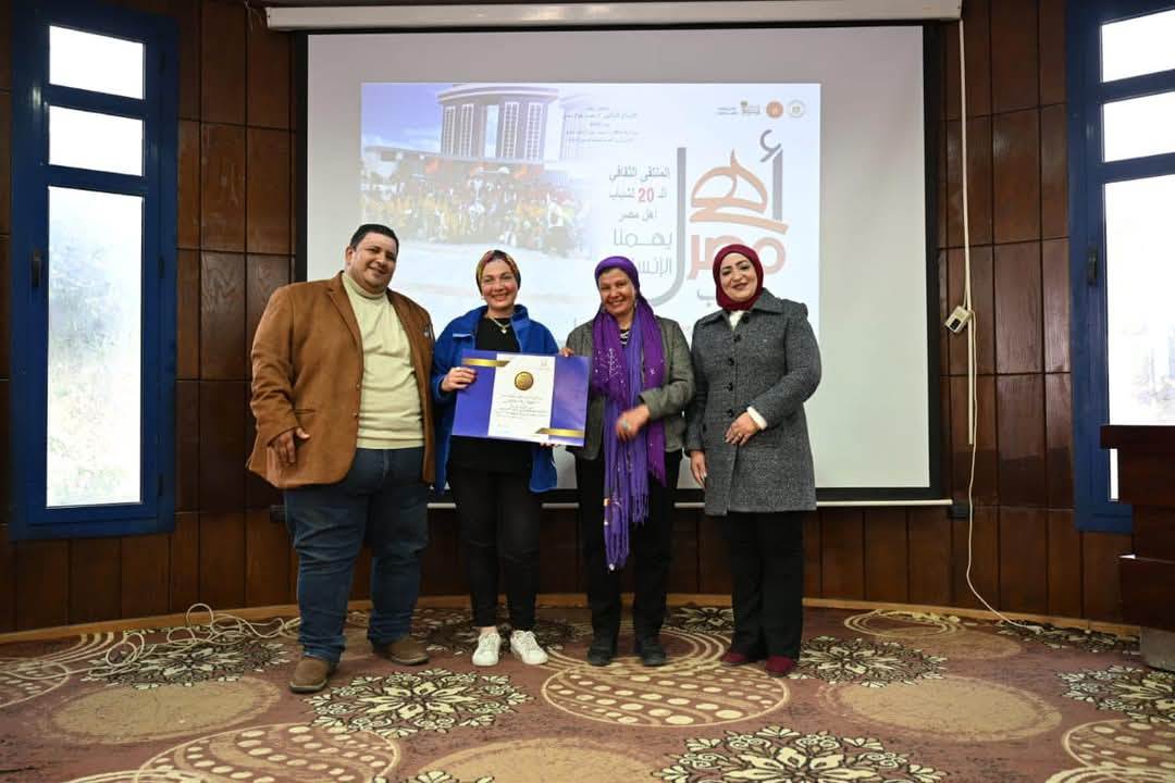واختتم الحفل بتكريم مشرفي الورش والمشاركين في الملتقى الذي استضاف 140 شابا وفتاة من المحافظات الحدودية "شمال سيناء، جنوب سيناء، البحر الأحمر، الوادي الجديد، مطروح، أسوان" إلى جانب شباب من المناطق الجديدة الآمنة بالقاهرة.