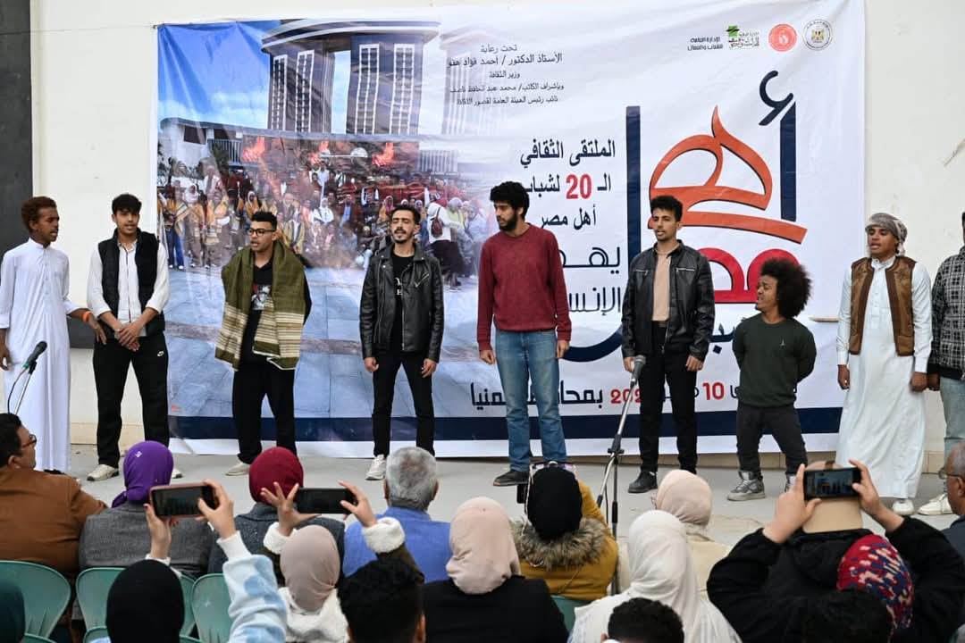 اختتمت بمحافظة المنيا، فعاليات الملتقى الثقافي العشرين لشباب المحافظات الحدودية، الذي أقيم ضمن مشروع "أهل مصر"، تحت رعاية الدكتور أحمد فؤاد هنو وزير الثقافة، واللواء عماد كدواني محافظ المنيا، ونظمته الهيئة العامة لقصور الثقافة، بإشراف الكاتب محمد ناصف، نائب رئيس الهيئة، تحت شعار "يهمنا الإنسان"، بهدف تكثيف الأنشطة الثقافية والفنية بعاصمة الثقافة المصرية لعام 2025.