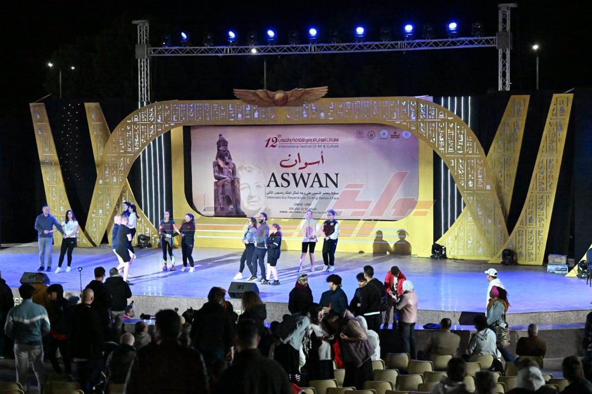 وعلى مسرح جامعة أسوان يقام عرض فني لفرقة أسوان للفنون الشعبية، وفرقة جمعيات كاراجونا الشعبية اليونانية، وفي مركز شباب غرب أسوان يقام عرض فني لفرقة كفر الشيخ للفنون الشعبية، وفرقة الرقص الشعبي "Aukstaiciai" الليتوانية، بينما يستقبل مركز شباب الدر عرض فني لفرقة الشرقية للفنون الشعبية، وفرقة أصحاب الوعد التونسية.