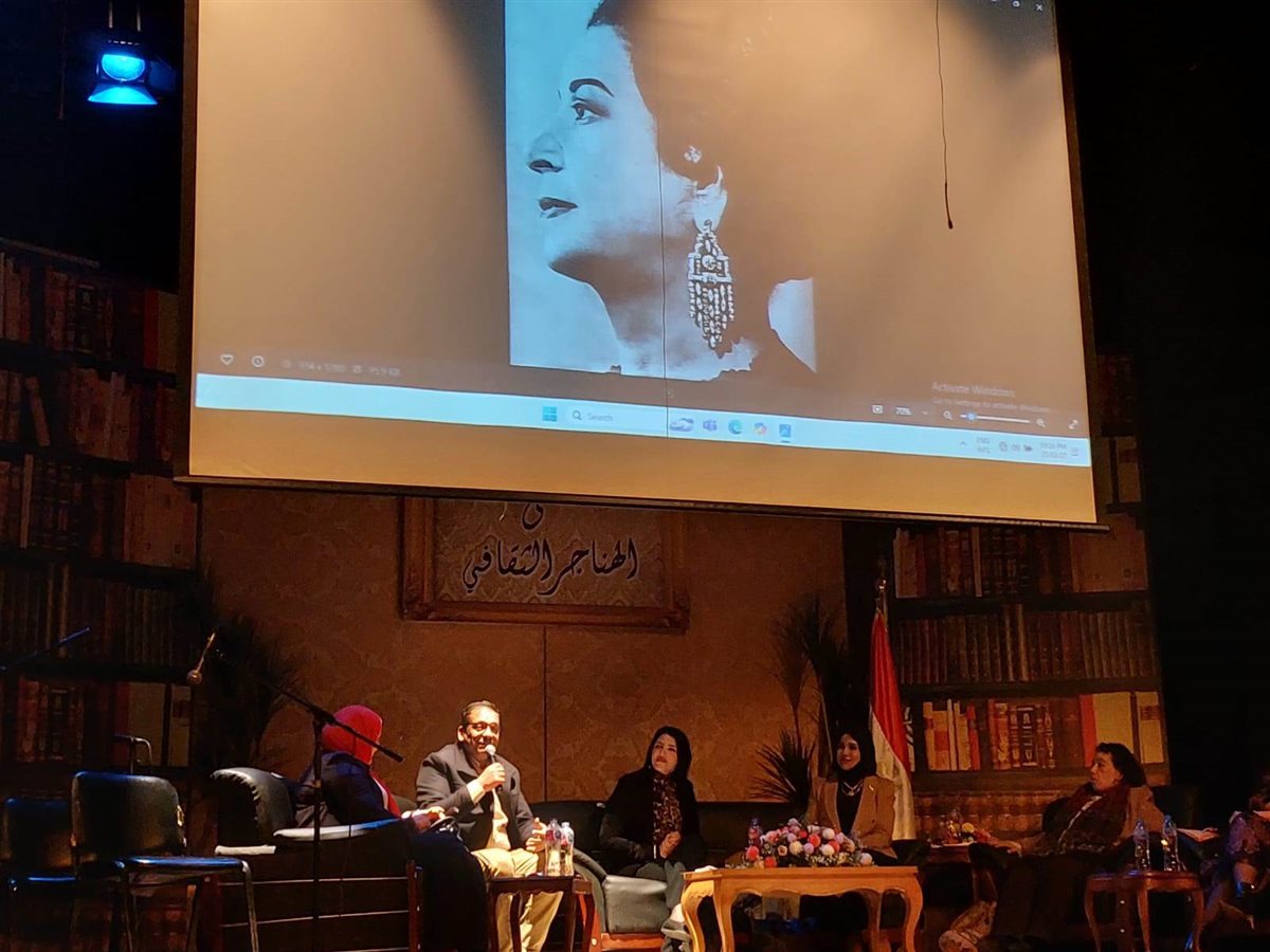 أدارت اللقاء الناقدة الأدبية الدكتورة ناهد عبد الحميد مدير ومؤسس الملتقى، التي رحبت فى بداية كلمتها بالسادة ضيوف المنصة، وقالت اليوم نتحدث على شخصية مصرية استطاعت أن تصنع نفسها وتوفر لها كل عوامل النجاح، فهى أسطورة مصرية خالصة هى كوكب الشرق أم كلثوم، صاحبة العصمة وفخر مصر والوطن العربى، والتي كانت القوة الناعمة الأولى لمصر، وساهمت فى بناء الشخصية المصرية، وهى أول من فكر فى انشاء نقابة للموسيقيين، وارتبط أسمها بالمناسبات القومية والدينية للوطن، مؤكدة أن عبقريتها لم تكن فى حنجرتها فقط بل فى شخصيتها أيضا، فقد رحلت عنا شمس الأصيل بجسدها فقط، لتبقى فينا وبيننا بصوتها وفنها الجميل .