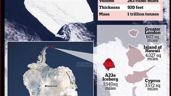 عاجل| يزن تريليون طن.. أكبر جبل جليدي في العالم ينجرف قبالة جزيرة