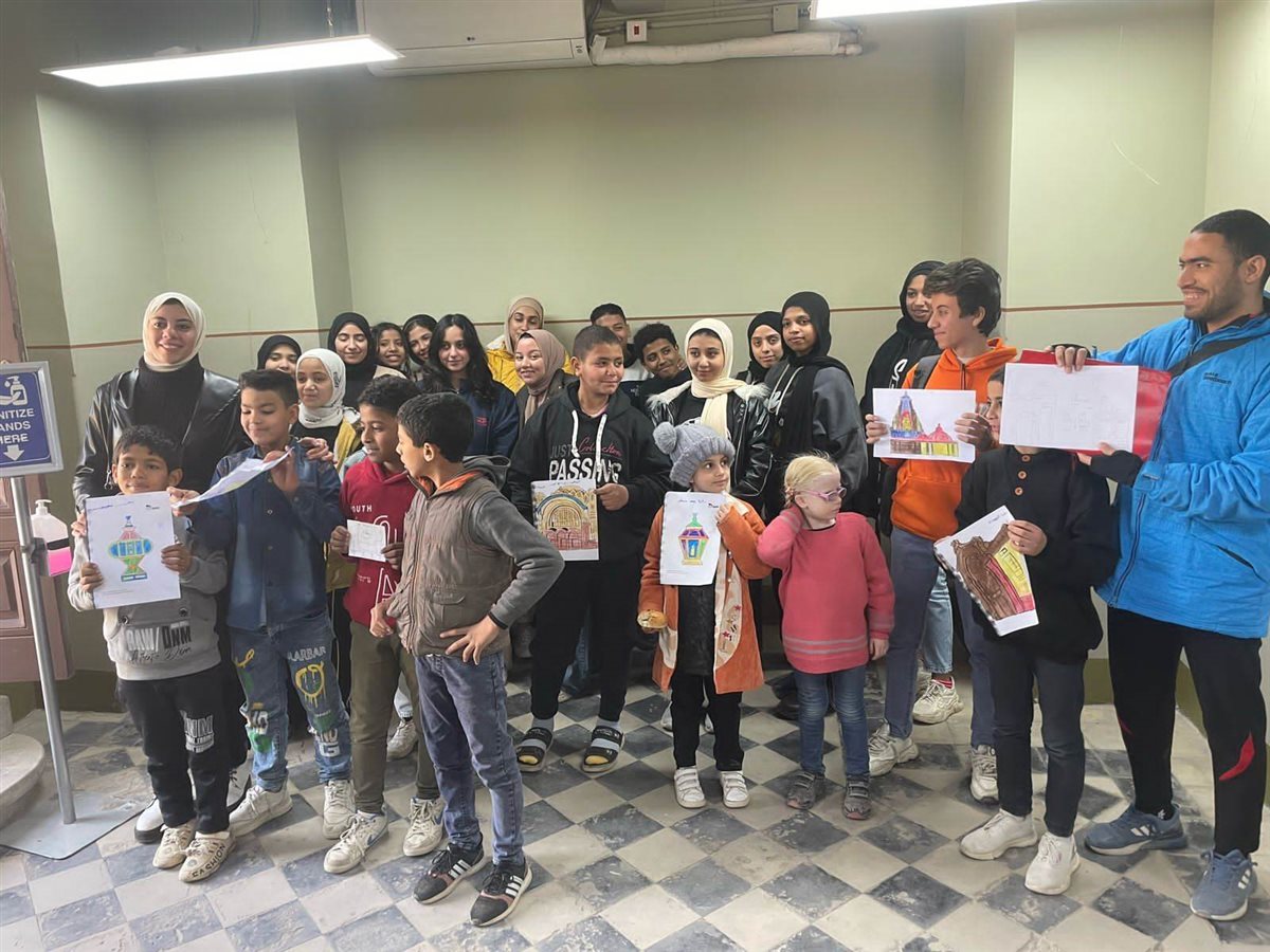 وتواصلت فعاليات الزيارة الميدانية المنفذة بإشراف الكاتب محمد ناصف، نائب رئيس الهيئة، بورش فنية للأطفال، نفذها طلاب كلية التربية الفنية، منها ورشة تصميم لوحات للقصر، وأخرى لعمل فواصل للكتب، وأخيرا ورشة عن مظاهر الاحتفال بشهر رمضان المبارك.