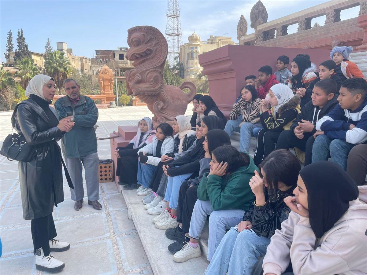 وخلال الزيارة استمتع الأطفال بجولة شملت الإطلاع على قاعة العرض التي تضم صورا توثق مراحل بناء وتخطيط مصر الجديدة، بجانب تفقد التماثيل والنوافذ والعناصر المعمارية التي تزين أرجاء القصر، وكذلك الأبراج المتفردة التي تجمع بين الطرز الهندية والإسلامية.