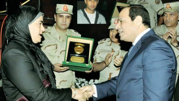 وتابعت: أوصانى بعدم الحزن فظللت أمزح فى المكالمة معه وأقول له قول يا شهيد وأصر فى نهاية المكالمة أن أدعو له دعوة فقلت له يا رب اشوفك زى الرئيس السيسي فى مكانته وحب الناس ليه، قالى يا ماما ادعيلى دعوة تانية الرئيس السيسي الله يكون فى عونه عنده مسؤوليات وهموم كتيرة وبيحمل أعباء وهموم الوطن الله يحميه ويحفظه لمصر، فدعيتله وقولتله يا رب أشوفك فى أعلى درجات عليين، وفى اليوم التالى جاءنى نبأ استشهاده يوم ١٦ مارس ٢٠١٦.