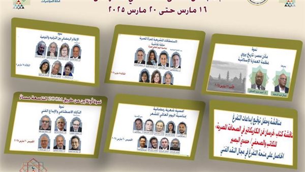 يوم الثلاثاء 18 مارس يشهد تنظيم فعاليتين هامتين، الأولى في قاعة المجلس الأعلى للثقافة في تمام الثامنة مساءً، وهي حلقة نقاشية بعنوان "الاستحقاقات التشريعية للمرأة المصرية"، يديرها المستشار الدكتور خالد القاضي، رئيس محكمة الاستئناف ومقرر لجنة ثقافة القانون والمواطنة وحقوق الإنسان، بمشاركة عدد من الشخصيات البارزة، من بينهم الدكتور إيهاب رمزي والدكتورة دينا عبد الكريم، عضوا مجلس النواب، والدكتور صفوت النحاس، الأمين العام لمجلس الوزراء الأسبق، والمستشار الدكتور محمد عبد المجيد، نائب رئيس مجلس الدولة، إضافة إلى الدكتورة منى الحديدي، أستاذ علم الاجتماع بجامعة حلوان، والدكتورة نهى بكر، أستاذ العلوم السياسية بالجامعة الأمريكية وعضو المجلس القومي للمرأة.
