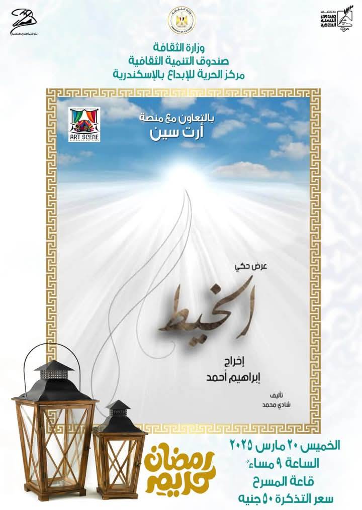 وفي الإسكندرية.. يقدم صندوق التنمية الثقافية لجمهور مركز الحرية للإبداع، مسرحية "الخيط"، بالتعاون مع منصة آرت سين، من إخراج إبراهيم أحمد، حيث يقدم العمل رؤية مسرحية مبتكرة تعكس قضايا مجتمعية معاصرة من خلال حبكة درامية شيقة.