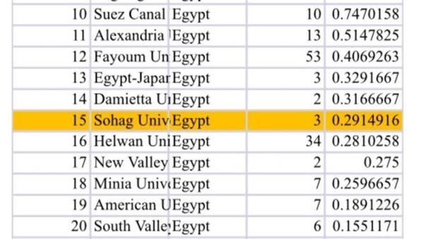جامعة سوهاج.. ضمن أبرز 54 مؤسسة بحثية مصرية وفق مؤشر nature index للأبحاث العلمية