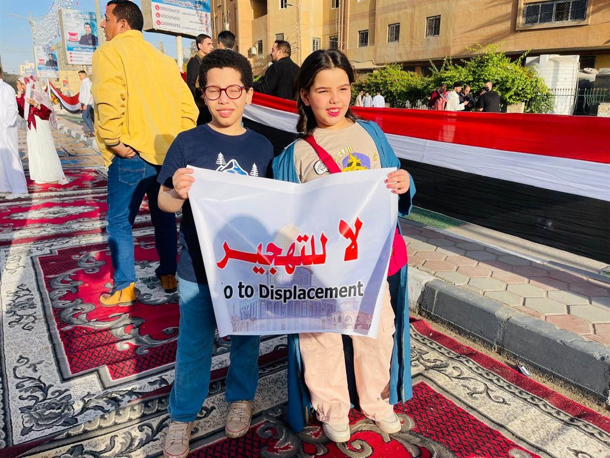 وشهدت صلاة العيد بالمحافظة، تجمعات غير مسبوقة من النساء والفتيات و الأطفال الصغار، حيث حمل المصلون الأعلام الفلسطينية منددين بالاعتداءات الإسرائيلية على شعب غزة، كما رفع المصلون أيضًا اللافتات التي ترفض تهجير الشعب الفلسطيني فى غزة خارج حدود أرضه، منددين بموقف الرئيس الأمريكى المتخاذل ضد الشعب الفلسطيني ووقوفه المفضوح مع الاسرائلية لاغتصاب الأراضي الفلسطينية.