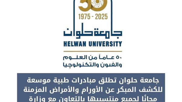 أعلنت جامعة حلوان عن انطلاق سلسلة من المبادرات الطبية المجانية التي تستهدف جميع منتسبي الجامعة من أعضاء هيئة التدريس، والهيئة المعاونة، والعاملين الإداريين، والطلاب، بالتعاون مع وزارة الصحة والسكان، ومديرية الشؤون الصحية بالقاهرة.
