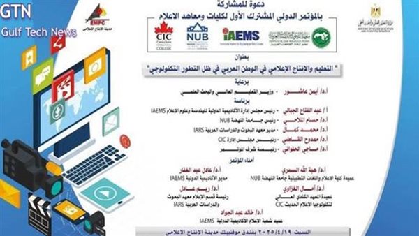 يعقد يوم الثلاثاء المقبل المؤتمر العلمي الدولي المشترك الأول لكليات ومعاهد الإعلام تحت شعار "التعليم والإنتاج اﻹﻋﻼﻣﻲ في الوطن العربي في ظل التطور التكنولوجي"، الذي ينظمه معهد البحوث والدراسات العربية التابع لجامعة الدول العربية، والأكاديمية الدولية للهندسة وعلوم الإعلام، وكلية الإعلام والعلوم التطبيقية بجامعة النهضة، والمعهد الكندي العالي لتكنولوجيا الإعلام الحديث، وذلك بمدينة الإنتاج الإعلامي برعاية الدكتور أيمن عاشور وزير التعليم العالي والبحث العلمي.