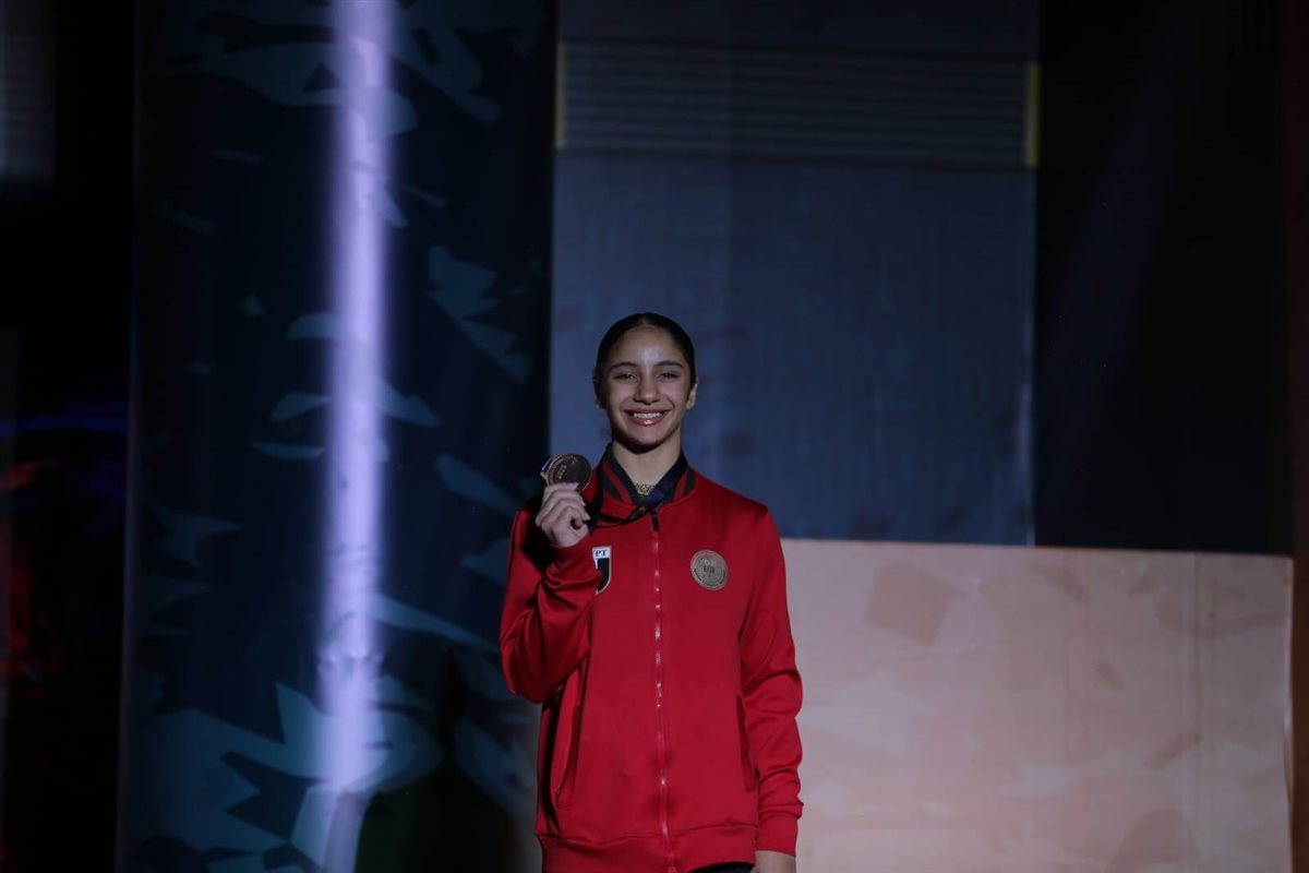 حصدت جودي عبدالله لاعبة المنتخب الوطني للجمباز، المركز الثالث والميدالية البرونزية خلال مشاركتها في منافسات بطولة كأس العالم للجمباز الفني، المقامة حاليا على مجمع الصالات المغطاة باستاد القاهرة، وتستمر حتى يوم 28 أبريل الجاري.