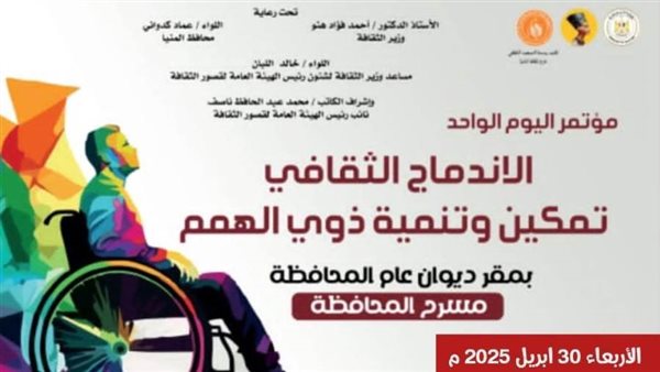 انطلاق مؤتمر اليوم الواحد للتمكين الثقافي لذوي القدرات الخاصة بالمنيا.. غدا