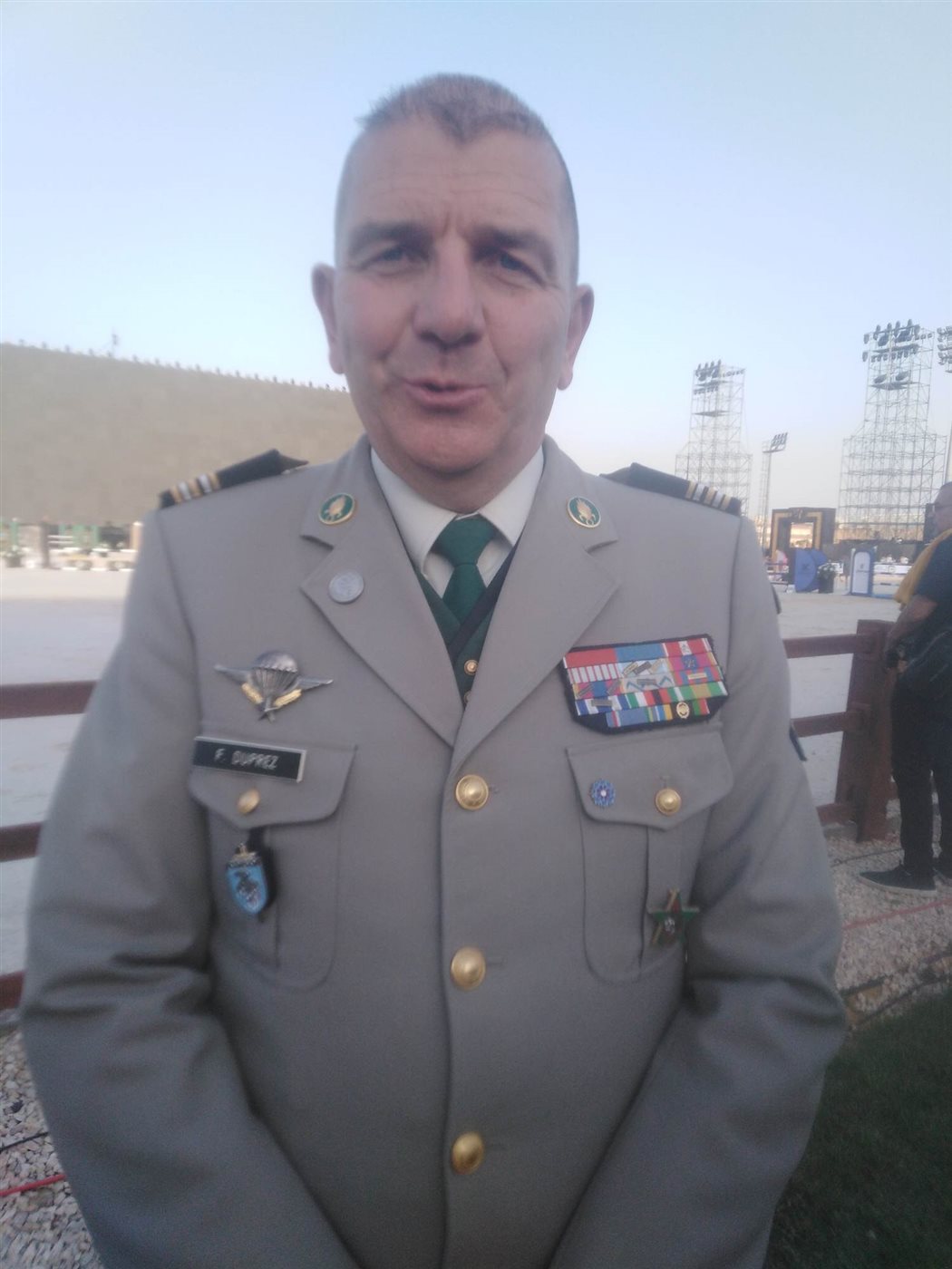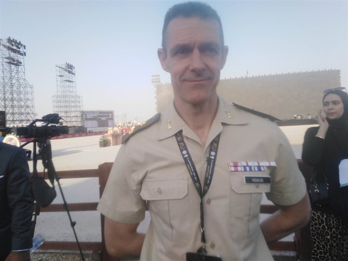 والتقت بوابة روزاليوسف العديد من الوفود المشاركة في البطولة، حيث التقينا برئيس البعثه الفرنسية ( كولونيا فريدريك لوبيز ) يقول انها اول مشاركة لي في بطولة مصرية وأنا سعيد بتلك المشاركة، ولقد شاركت في بطولات عالمية كثيرة والتنظيم الذي رأيته في مصر لايقل عن أي تنظيم شاهدته في البطولات العالمية الأخرى فمن الصعب على أي دولة استضافة أكثر من 20 دولة كما فعلت مصر، ويضيف رئيس بعثة فرنسا اننا نشارك في البطولة ب3 فرسان ونتمنى تحقيق مركز متقدمة في البطولة كما أحب اشيد بحفاوة الاستقبال والترحاب الذي َشاهدناه من المصريين.