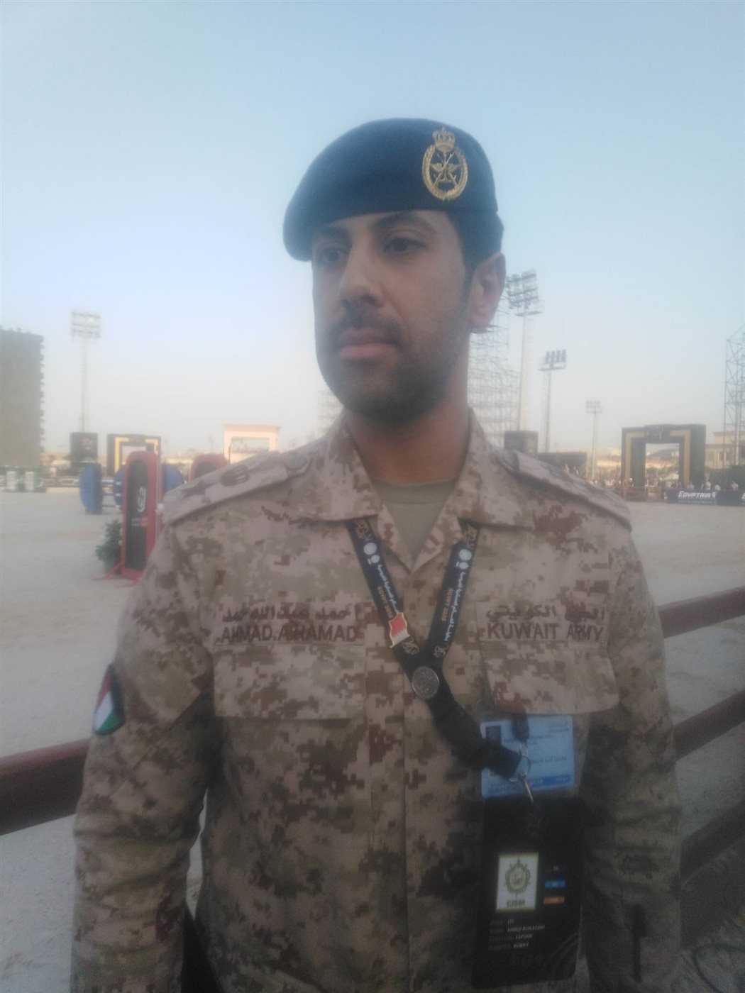 ويقول أحمد عبدالله حمد مدرب الفريق الكويتي العسكرى : نحن نشارك في البطوله بثلاث فرسان وتعد تلك البطوله هي تاني مشاركه لنا في بطول فروسية تقام على أرض مصر فالأولى كانت في العام الماضي وهي البطولة العربية للفروسية والحالية هي البطولة العالمية، وعن رأيه في تنظيم مصر للبطولة يقول: أنا شاهدت في مصر مجروحة لعشقي الشديد لها ولشعبها فأنا شاركت في بطولات عالمية عديدة في الكثير من الدول وأجزم أن ما رأيته من تنظيم وتأمين البطولة هنا لايقل عن أي تنظيم شاهدته في بطولات عالمية أخرى.