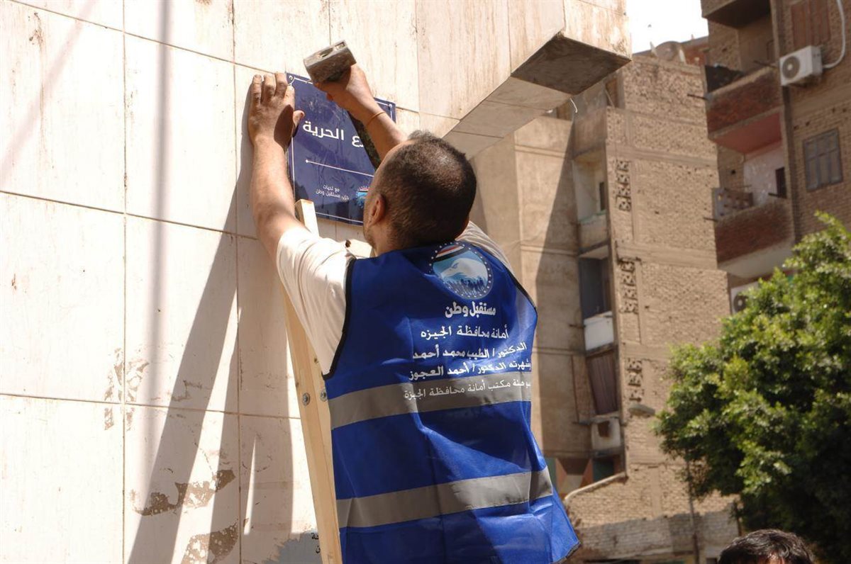 أطلقت أمانة حزب مستقبل وطن وطن بمحافظة الجيزة، مبادرة مجتمعية تحت عنوان "الشارع له اسم"، وتستهدف إحلال وتجديد اللافتات المتهالكة لأسماء الشوارع وتركيب أخرى جديدة للشوارع التي لا تحمل لافتات، وانطلقت المبادرة التي تستهدف تعزيز التراث المصري وحماية حياة المواطنين بالتنسيق مع رئاسة أحياء إمبابة والمنيرة الغربية.