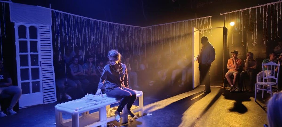 يذكر أن العرض يعد تجربة نوعية لقصر ثقافة الأنفوشي، من تأليف محمد عادل النجار، وإخراج أحمد علاء، ويناقش مشكلة الانفصال الوجودي والعاطفي بين زوجين يعيشان تحت سقف واحد، لكنهما ينتميان إلى عالمين متناقضين لا يلتقيان.