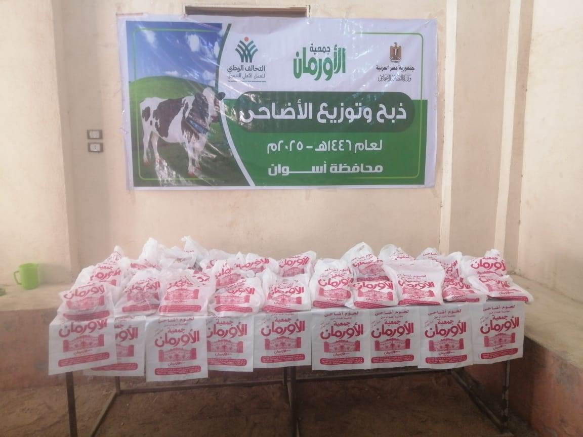 من جهته أوضح اللواء ممدوح شعبان، مدير عام جمعية الأورمان،أنه تم توزيع اللحوم، بدء خلال اول وثان أيام العيد على أهالي قرى البصيلة بحري والمعامريه والغنيمية والقنادله والمريناب ونجع السايح والشراونه بحري والشراونه قبلي وحاجر البصيليه وأبوغلاب بمركز ادفو، وقرى الزنيقه والرديسية والتوفيقيه وأقليت وسلوا بحرى والرغامه غرب والرغامه البلد وجعفر الصادق وفارس كوم أمبو وغيرهم من قرى محافظة أسوان .
