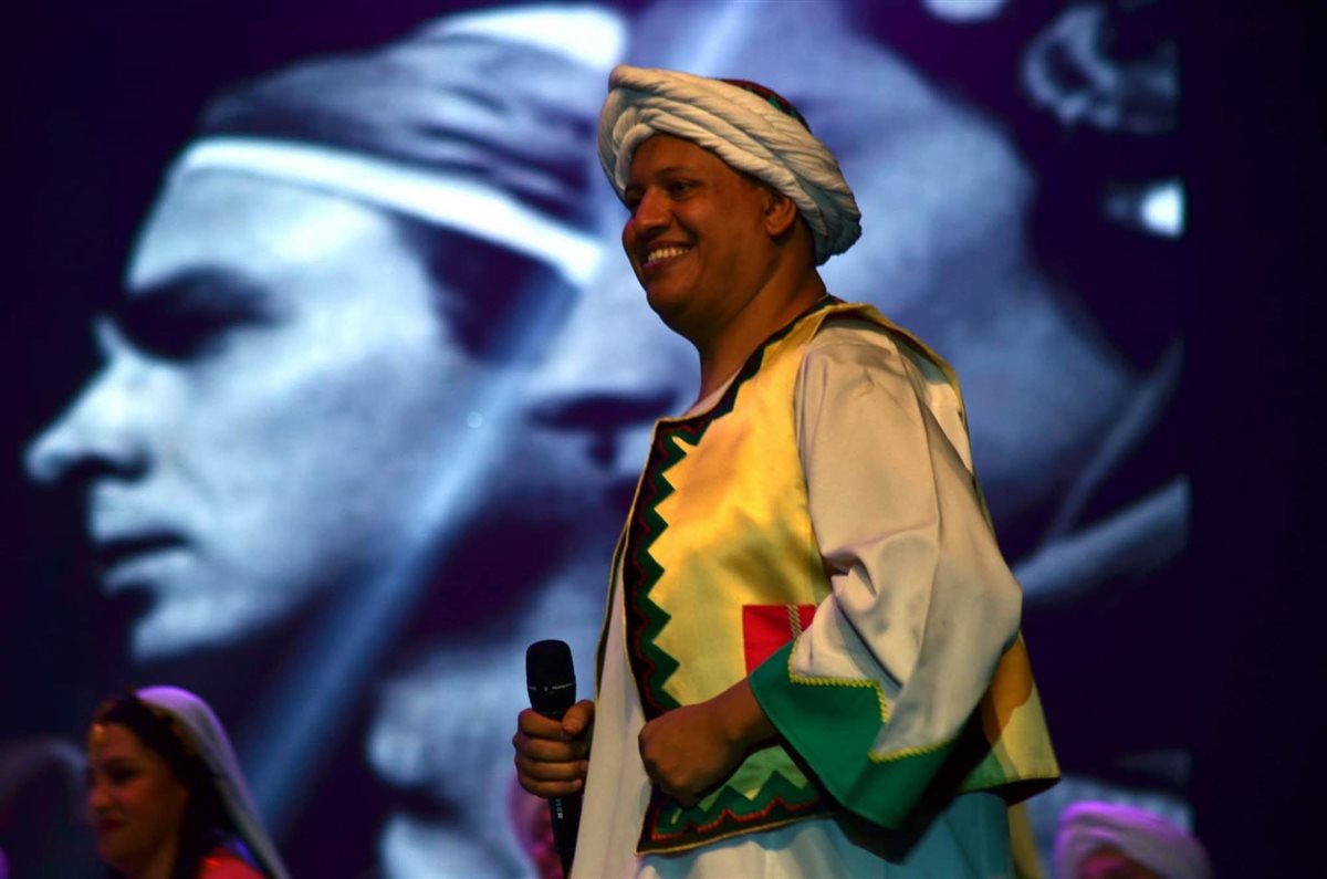 وقد جاءت الاحتفالية على فصلين؛ حيث افتتحتها فرقة رضا للفنون الشعبية والاستعراضية بقيادة أوركسترا المايسترو سليم سحاب، بمجموعة من الفقرات الموسيقية والاستعراضية التي ضمّت: موسيقى فيلم غرام في الكرنك، حلاوة شمسنا، العتبة جزاز، البنت بيضا، الحجالة، مقطوعة موسيقية، النوبة.
