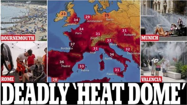 لجأ السائحون في مدينة الفاتيكان إلى المظلات للاحتماء من الحر، ورشوا وجوههم بالماء البارد من نافورة بينما كانوا يعانون من حرارة بلغت 37 درجة مئوية.