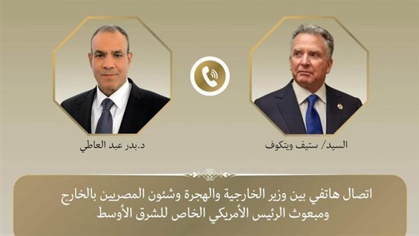 فى إطار الاتصالات والجهود المصرية الرامية لخفض التصعيد بالمنطقة، أجرى د. بدر عبد العاطي وزير الخارجية والهجرة اتصالاً هاتفياً مع "ستيف ويتكوف" مبعوث الرئيس الأمريكي الخاص للشرق الأوسط اليوم الاثنين.