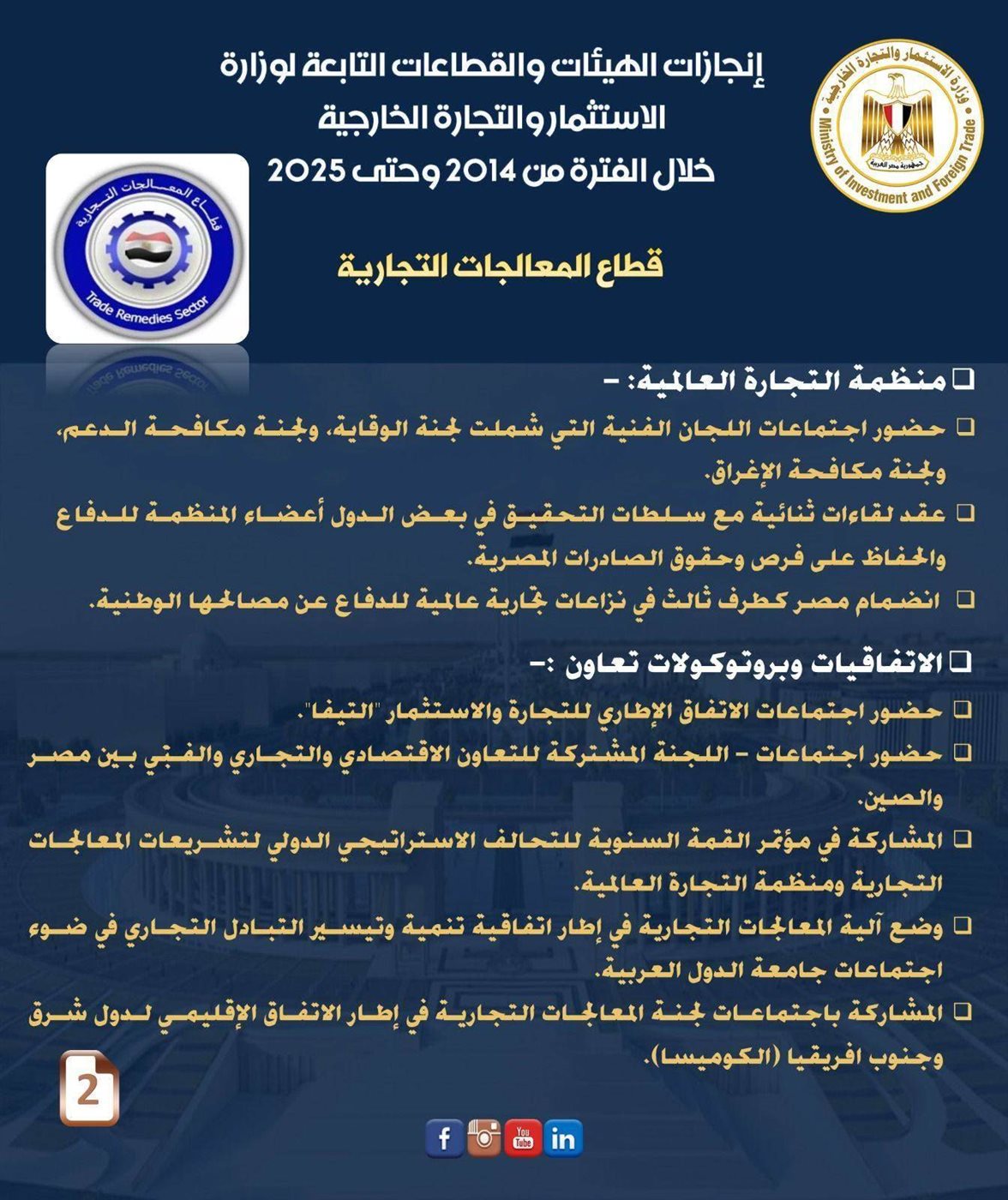 ●انضمام مصر كطرف ثالث في نزاعات تجارية عالمية للدفاع عن مصالحها الوطنية. •الاتفاقيات وبروتوكولات تعاون: