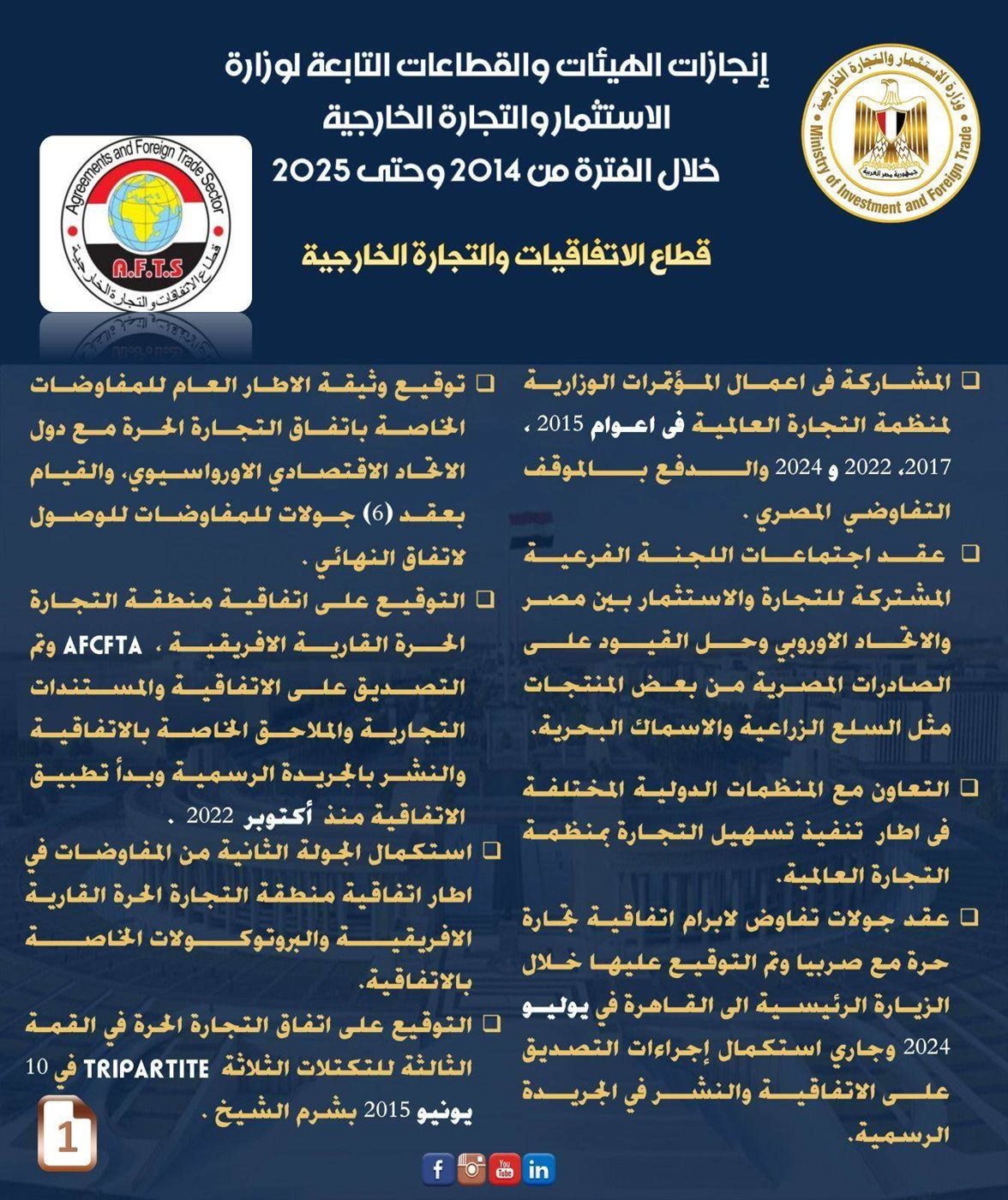 إنجازات وزارة الاستثمار وقطاعاتها من 2014 وحتى 2025