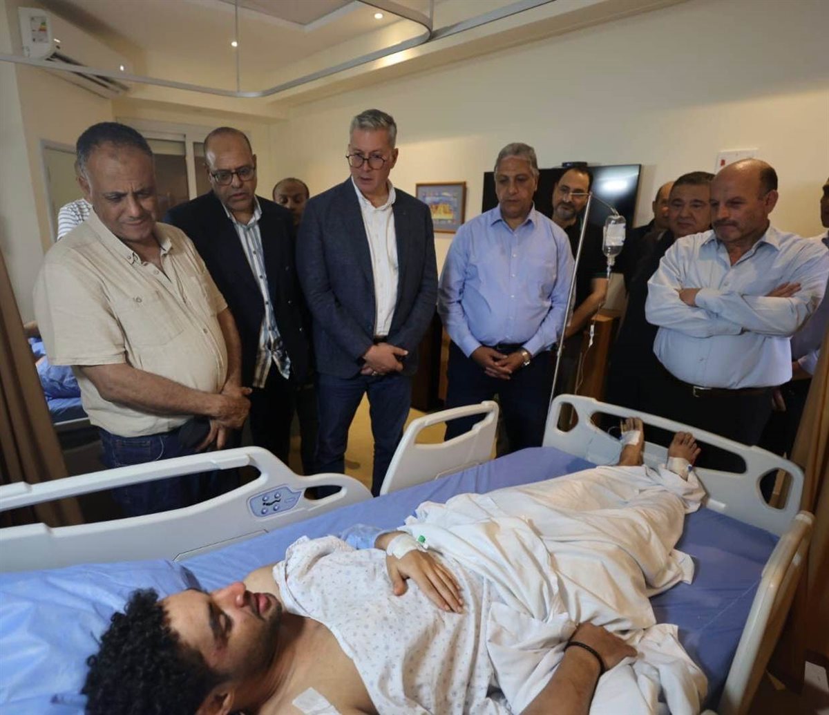 وقد توجه الوزيران ببالغ العزاء والمواساة في شهداء الحادث ، سائلين الله لهم الرحمة والمغفرة ولأسرهم خالص العزاء والمواساة ، وحرصوا خلال زيارتهم الناجين والمصابين بالمستشفى على تقديم الدعم النفسي والمعنوي مؤكدين لهم على تقديم كل سبل الدعم و المساندة الكاملة حتى تمام الشفاء، واطمأنوا من الفرق الطبية على توفير جميع أوجه الرعاية الطبية للمصابين ، واستمرار المتابعة حتى التماثل للشفاء، متمنين للمصابين الشفاء العاجل والسلامة و العودة إلى أسرهم وذويهم وأماكن عملهم .