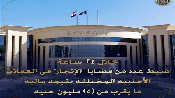 وأسفرت جهود قطاع الأمن العام بالاشتراك مع الإدارة العامة لمكافحة جرائم الأموال العامة ومديريات الأمن خلال 24 ساعة عن ضبط عدد من قضايا اتجار غير مشروع في النقد الأجنبي خارج السوق المصرفي وتم ضبط عملات أجنبية بلغت قيمتها 5 ملايين جنيه.