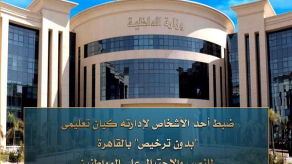تمكنت الأجهزة الأمنية بوزارة الداخلية من ضبط شخص لقيامه بإدارة كيان تعليمي بدون ترخيص بالقاهرة.