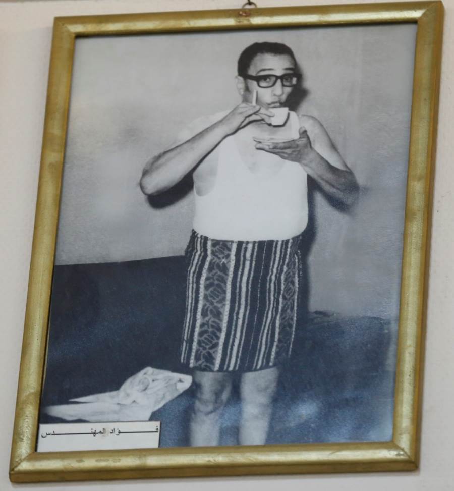 وحتى اللقطاتُ الطريفةُ لها مكانٌ هنا، فصورةُ نجمِ الكوميديا فؤاد المهندس وهوَ يحتسي فنجانَ قهوةٍ مرتديا الفانلة الداخليةَ تُعيدُ إلى الأذهانِ بساطةَ العمالقةِ، وتُبرزُ كيفَ أثرى المسرحَ المصريَّ بمسرحياتٍ مثلَ "سيدتي الجميلة" و"سك على بناتك" و"إنها حقًا عائلة محترمة".