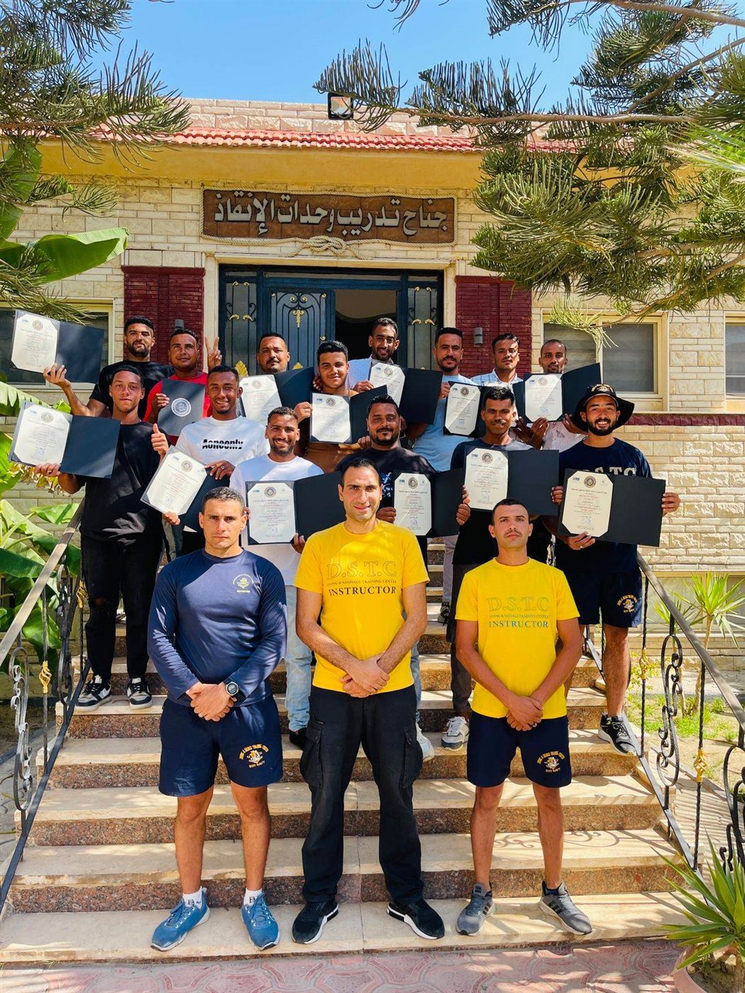 وقد تم تسليم شهادات اجتياز التدريب للمنقذين الذين أتموا الدورة بنجاح.