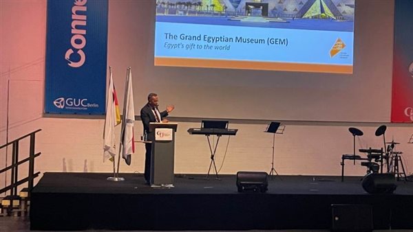 جاء ذلك خلال كلمته في افتتاح معرض المتحف المصري الكبير، والذي تستضيفه الجامعة الألمانية في برلين، بحضور الدكتور أشرف منصور، رئيس مجلس أمناء الجامعة الألمانية بالقاهرة والعاصمة الإدارية وفرع برلين، والسفير محمد البدري سفير مصر لدى ألمانيا، إلى جانب وفد رفيع من السفراء والدبلوماسيين والأكاديميين والإعلاميين من ألمانيا ومصر.