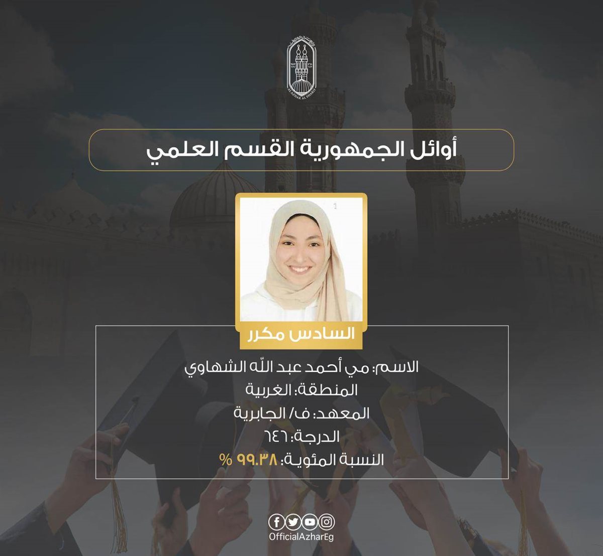 المركز السادس مكرر (جميع الأسماء التالية حصلت على 646 درجة – 99.38%)