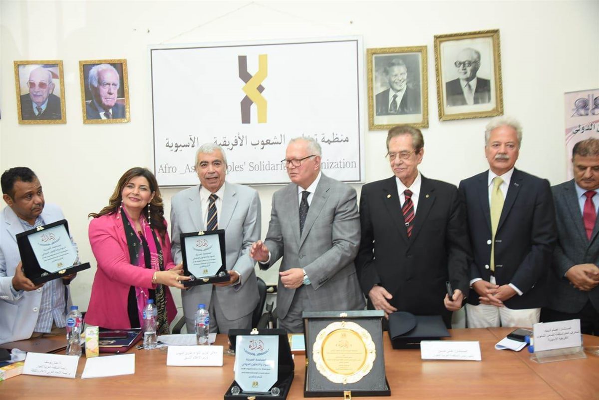 وتم تكريم كل من الوزير محمد العرابي والمستشار عدلي حسين والوزير طارق المهدي والمستشار عصام شيحة والمستشار نزار الخالد والدكتور حيدر الجبوري والدكتور عاطف عبداللطيف وايضاً كان هناك تكريم خاص للنقابة العامة للصحفيين الفلسطينيين دعما للقصة الفلسطينية وصمود الشعب الفلسطيني الباسل.