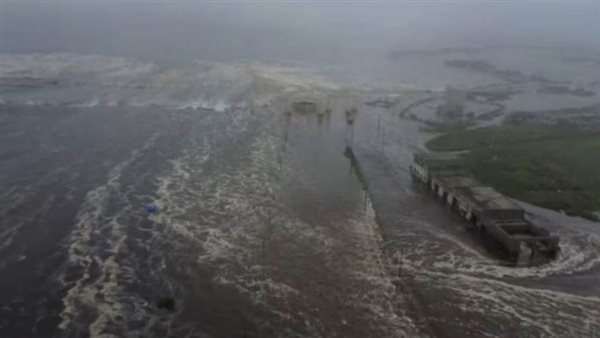 وأظهرت لقطات تم التحقق منها من طائرة بدون طيار أن ساحل المدينة بأكمله كان مغمورًا بالمياه، مع وجود مبانٍ أطول وبعض مرافق التخزين محاطة بالمياه، والتي شوهدت تتدفق عائدة إلى البحر.