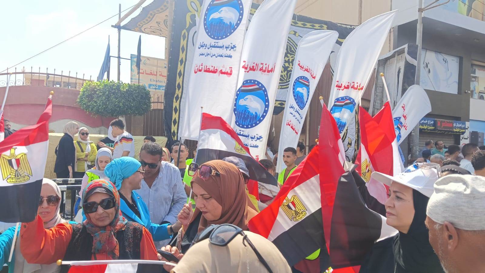 بالصور.. ناخبون يرفعون علم مصر أمام لجنة صادق الرافعي في الغربية