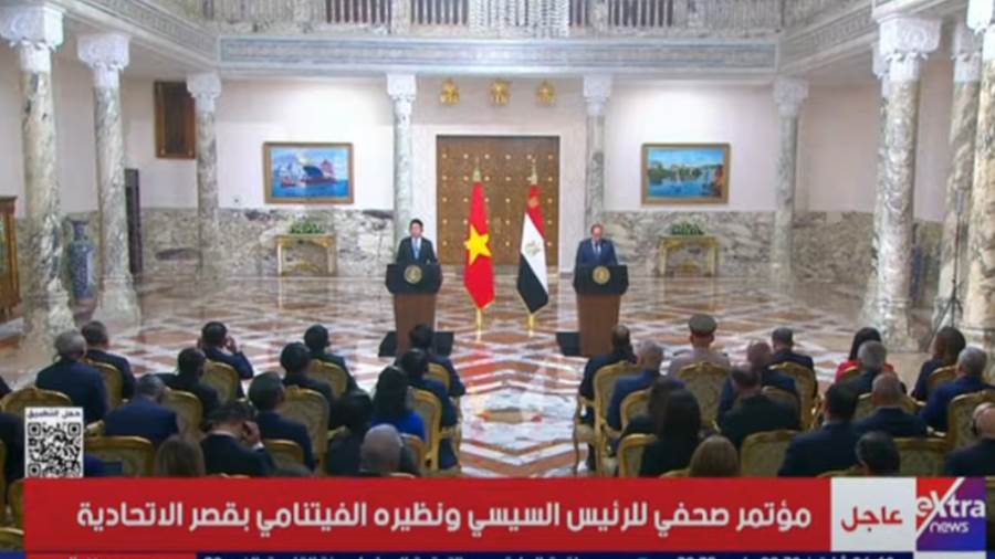 جدير بالذكر أن الرئيس عبد الفتاح السيسي، رئيس الجمهورية، استقبل اليوم بقصر الاتحادية، لوونج كوونج، رئيس جمهورية فيتنام الاشتراكية، لبحث سبل تعزيز العلاقات الثنائية بين البلدين، بالإضافة إلى التشاور حول القضايا الإقليمية والدولية محل الاهتمام المشترك.