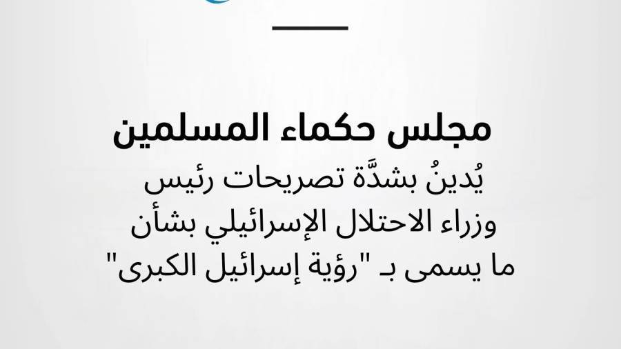 مجلس حكماء المسلمين يُدينُ بشدَّة تصريحات رئيس وزراء الاحتلال بشأن "رؤية إسرائيل الكبرى"