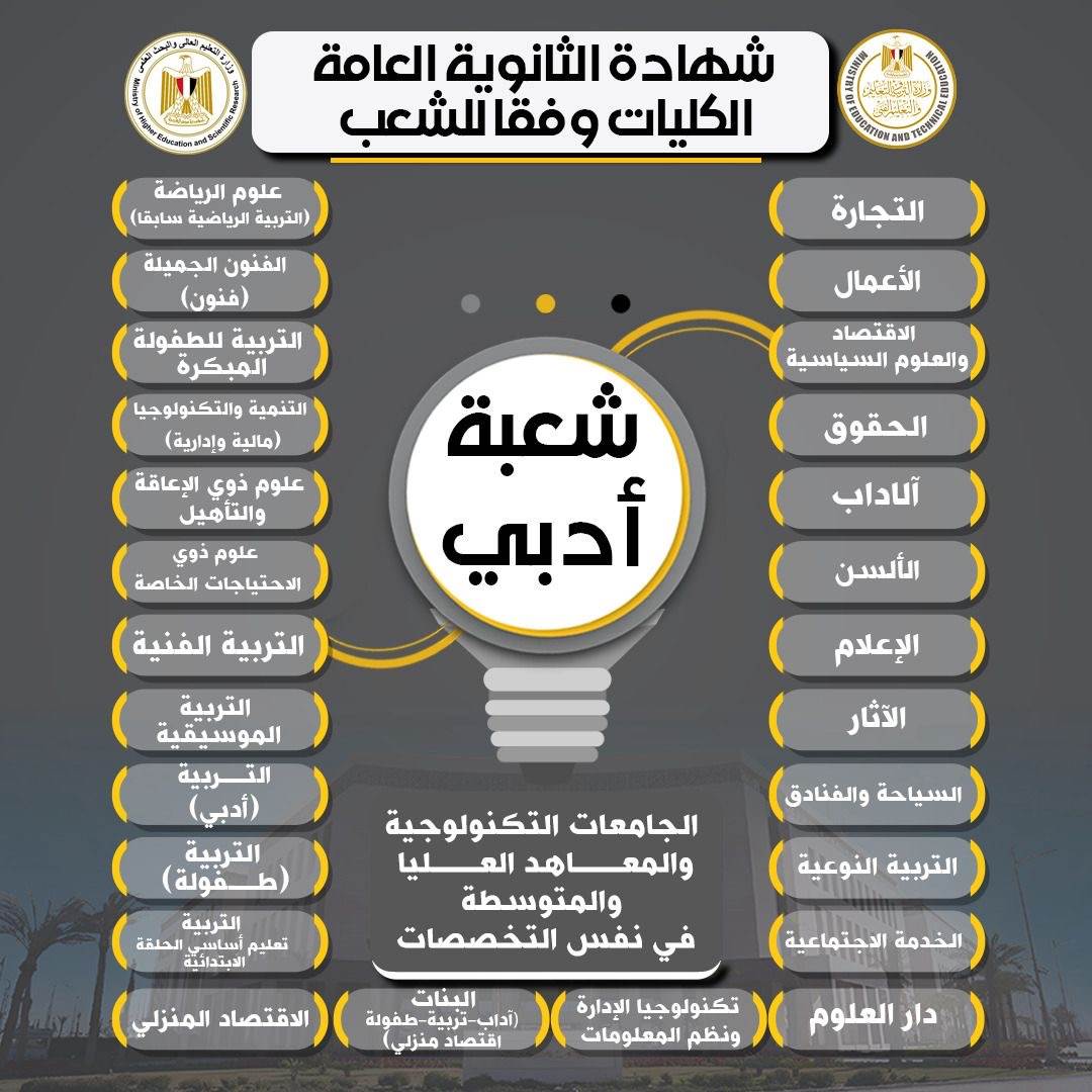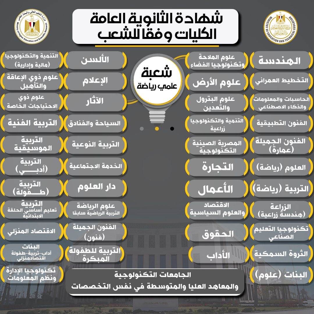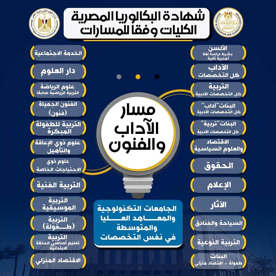 التفاصيل الخاصة بالكليات المتاحة للمسارات المختلفة في نظامي البكالوريا الجديد والثانوية العامة