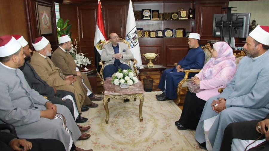 محافظ بني سويف يلتقي أعضاء قافلة "البحوث الإسلامية" لمتابعة فعالياتها الدعوية