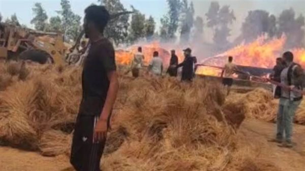 بالصور.. حريق شونة كتان في "شبراملس" بالغربية