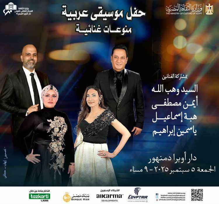 تواصل الثقافة المصرية ممثلة في دار الأوبرا، برئاسة الدكتور علاء عبدالسلام تنفيذ خطط إعادة صياغة الوعي الفني للمجتمع، حيث يقام حفل، يضم مجموعة من مؤلفات الموسيقى العربية الشهيرة التي تنتمي إلى زمن الفن الجميل يؤديها كل من السيد وهب الله، أيمن مصطفى، هبة إسماعيل، ياسمين إبراهيم، وذلك في التاسعة مساء الجمعة 5 سبتمبر 2025 على مسرح أوبرا دمنهور.