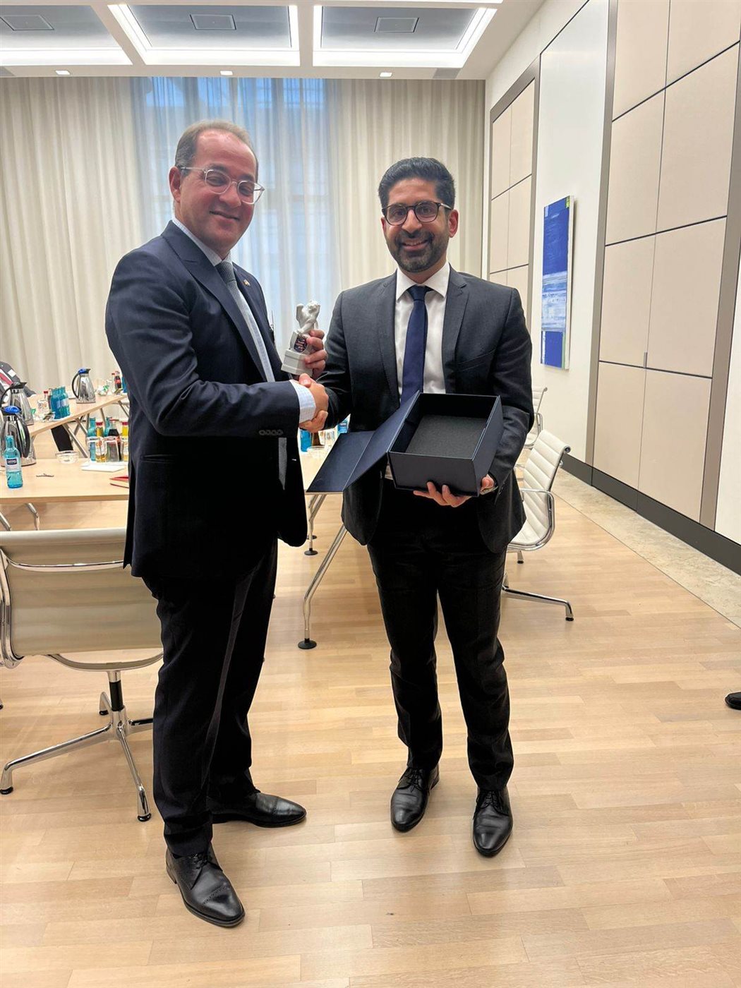 وأضاف كجوك، خلال لقائه مع كاوه منصورى وزير الاقتصاد بـ "فرانكفورت هسة" بألمانيا، على هامش ملتقى الأعمال المصري الألماني الذي تنظمه الغرفة الألمانية العربية للصناعة والتجارة، أن التكامل الاقتصادي بين البلدين يشمل تعزيز التبادل التجاري والاستثماري والعلمي وتبادل الخبرات والمهارات.