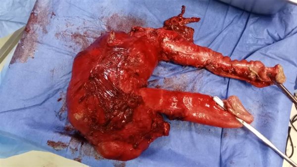 وقال الدكتور محمد عبد الله مدير مستشفى الفيوم العام، إن المريض حضر إلى المستشفى وهو يعاني من إمساك مزمن وانسداد معوي متكرر بعد عمليتي استئصال زائدة دودية و عملية استكشاف قديمة بالبطن نتيجة طعنة بسلاح أبيض وكانت حالته غير مستقرة، حيث حجز المريض داخل قسم الجراحة وعمل الفحوصات الطبية اللازمة ومنحه الأدوية اللازمة وتجهيز المريض لدخول غرفة العمليات بعد اكتمال الفحوصات و تهيئة المريض لعمل جراحة عاجلة بالبطن، حيث تم إجراء عملية استكشاف بمنطقة البطن عن طريق شق وسطي وتبين وجود ورم كبير بالقولون الصاعد وجزء من القولون المستعرض حيث تم فك الالتصاقات وفصل الورم عن الاثني عشر و المرارة والقناة المرارية وجدار البطن وعمل فتحة تحويل مجرى البراز.
