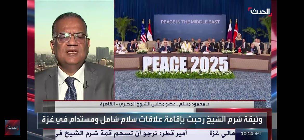 وأكد أنه منذ أسبوعين كان الاحتلال الإسرائيلي يدكّ قطاع غزة، ولم يتوقف عن الغارات على القطاع الفلسطيني والاعتداءات على الضفة الغربية، وكل هذا كان في ظل قصف الاحتلال الإسرائيلي وتجاوزاته واعتداءاته المتكررة، وعدم اعتبار رئيس وزراء الاحتلال لأي أحد، بالإضافة إلى مساندة الرئيس الأمريكي دونالد ترامب للاحتلال، حتى جاءت اتفاقية شرم الشيخ لتمهّد لسلامٍ في منطقة الشرق الأوسط، وبدايةِ إيقاف الحرب، وإدخالِ المساعدات، وتسليمِ الأسرى والمحتجزين، كخطوةٍ قويةٍ لإرساء سلامٍ شامل، وما يترتب عليه يتوقف على الأطراف المختلفة.