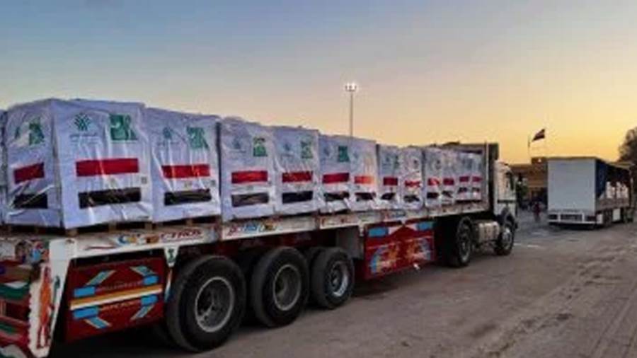 بدأت شاحنات المساعدات الإنسانية في الدخول إلى معبري العوجة وكرم أبو سالم ضمن قافلة “زاد العزة من مصر إلى غزة” حاملة مواد إغاثية متنوعة.